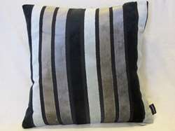 Hjem » Produkter » Pude – sort/brun/beige – strib – velourligende struktur